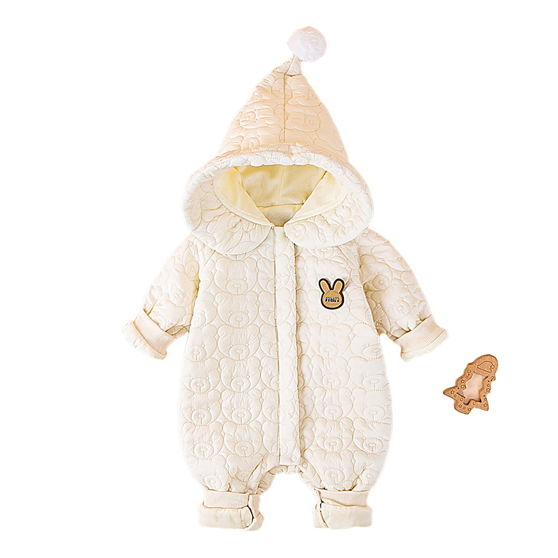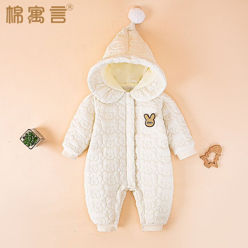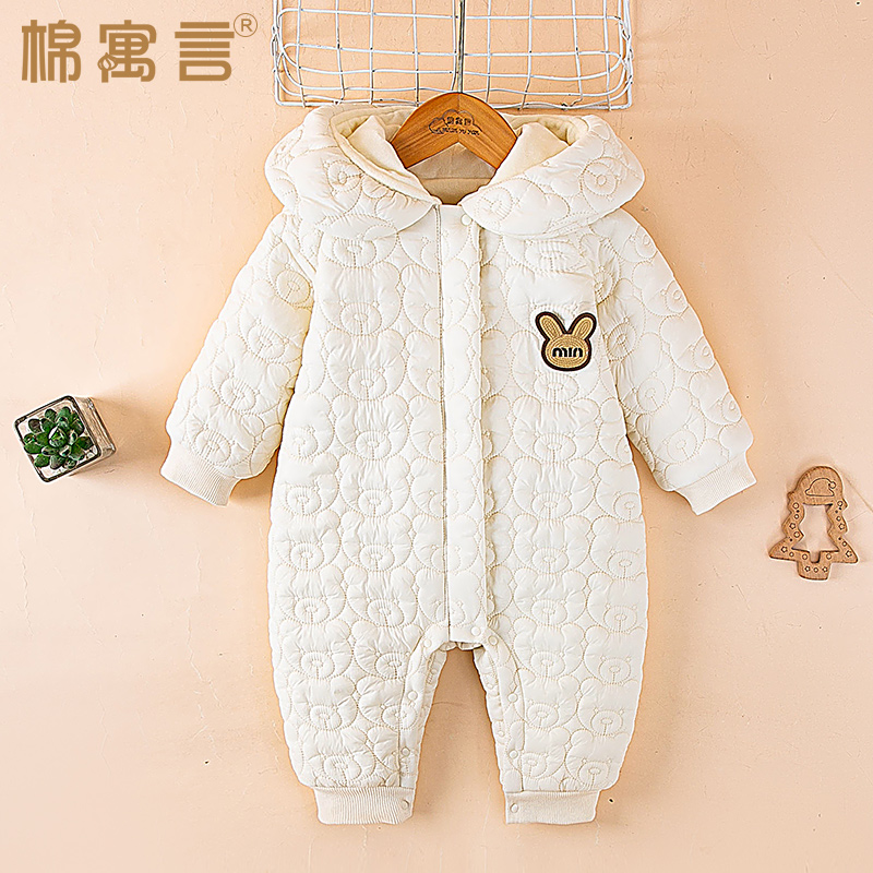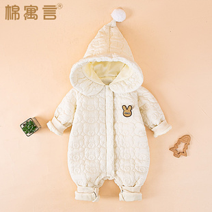 秋冬婴儿衣服夹棉连帽外套宝宝防风保暖外出服连体衣加厚哈衣爬服