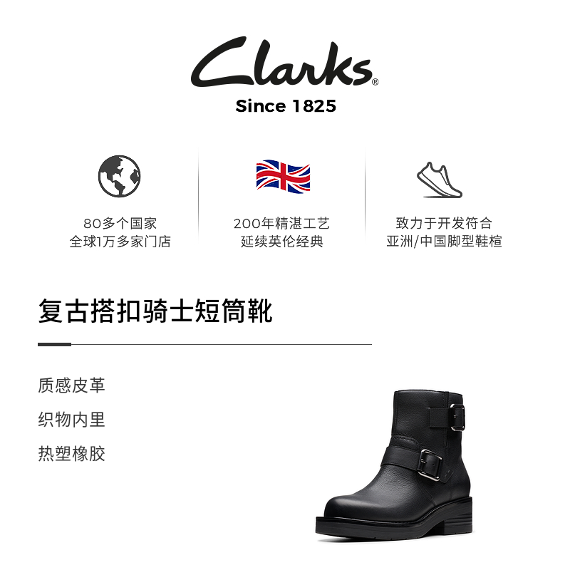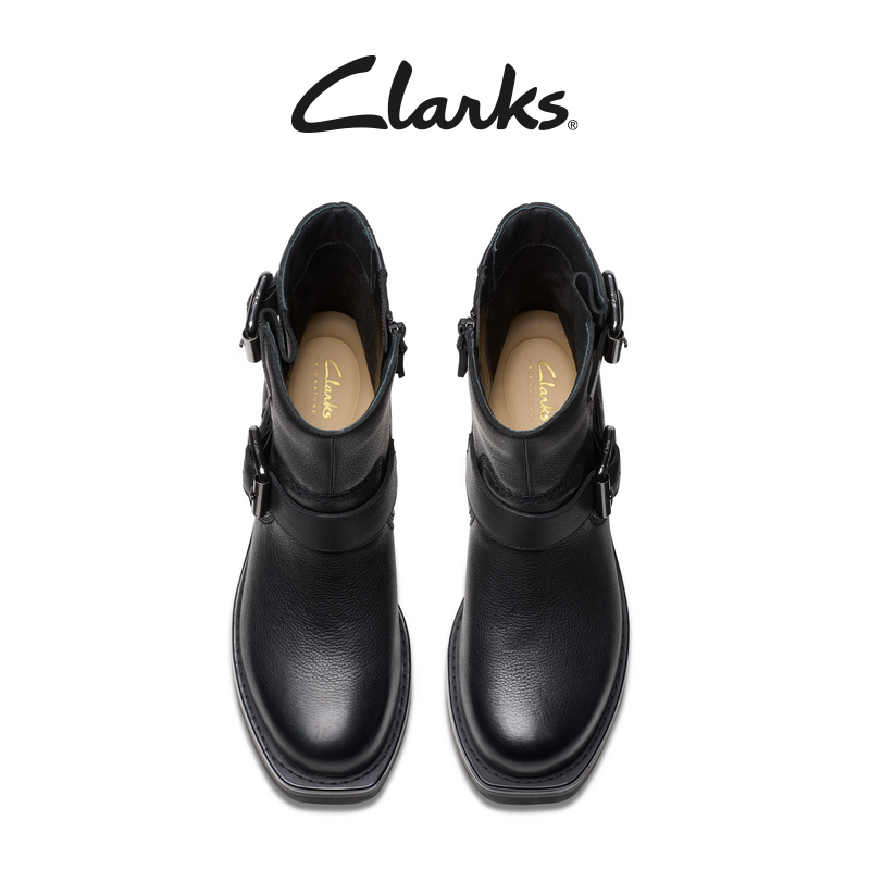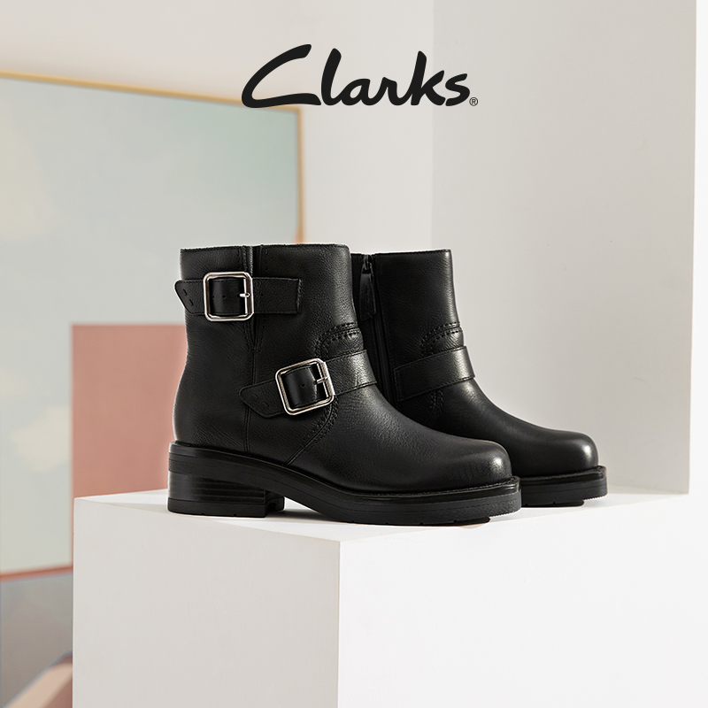 靴女 复古搭扣大筒皮骑士靴时装 Clarks其乐Rebelle Buckle秋冬新品