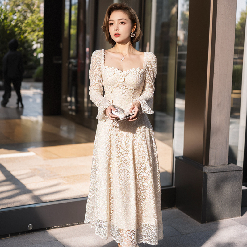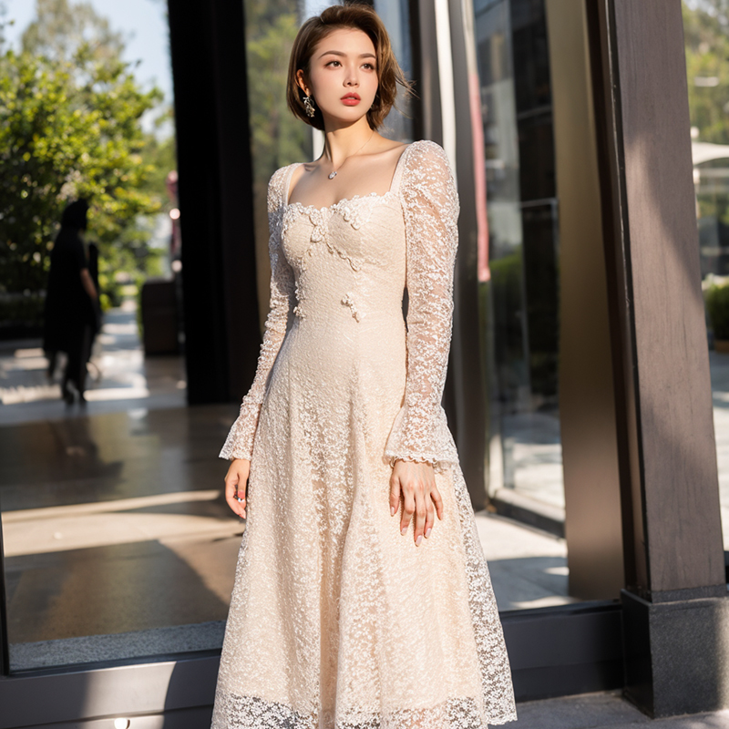 新款 2025秋装 秋水伊人白色连衣裙女夏 通勤绝美a字裙子 100%棉