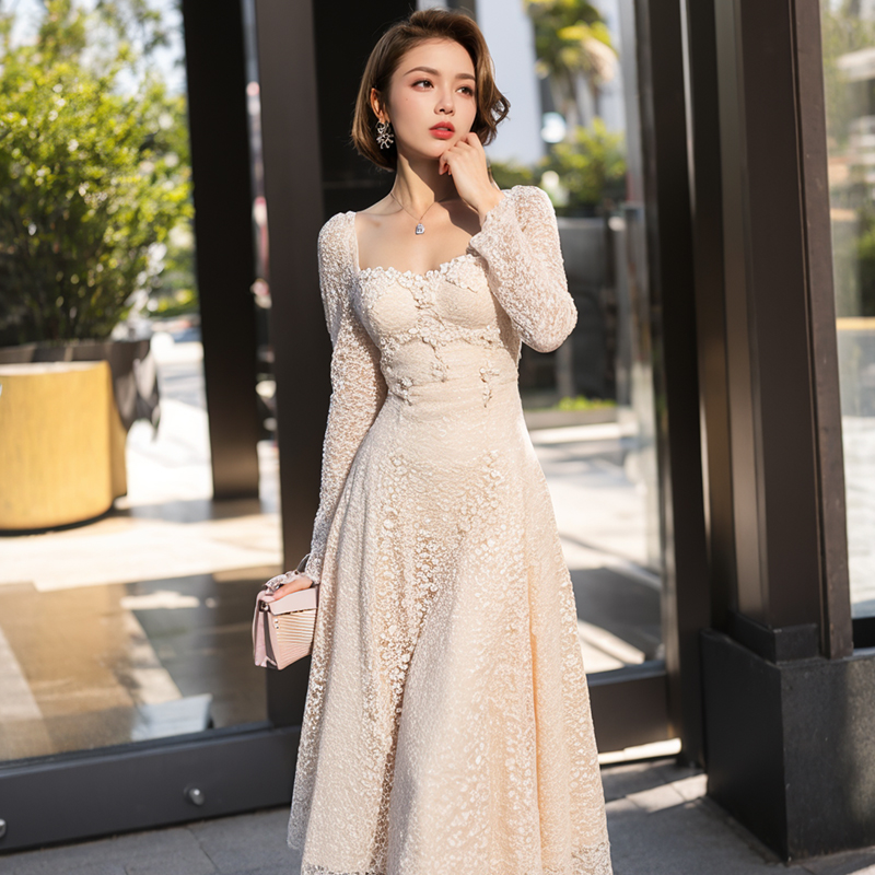 DPLAY2025秋季 流光纱红色连衣裙新娘敬酒服订婚礼服裙回门服 长袖