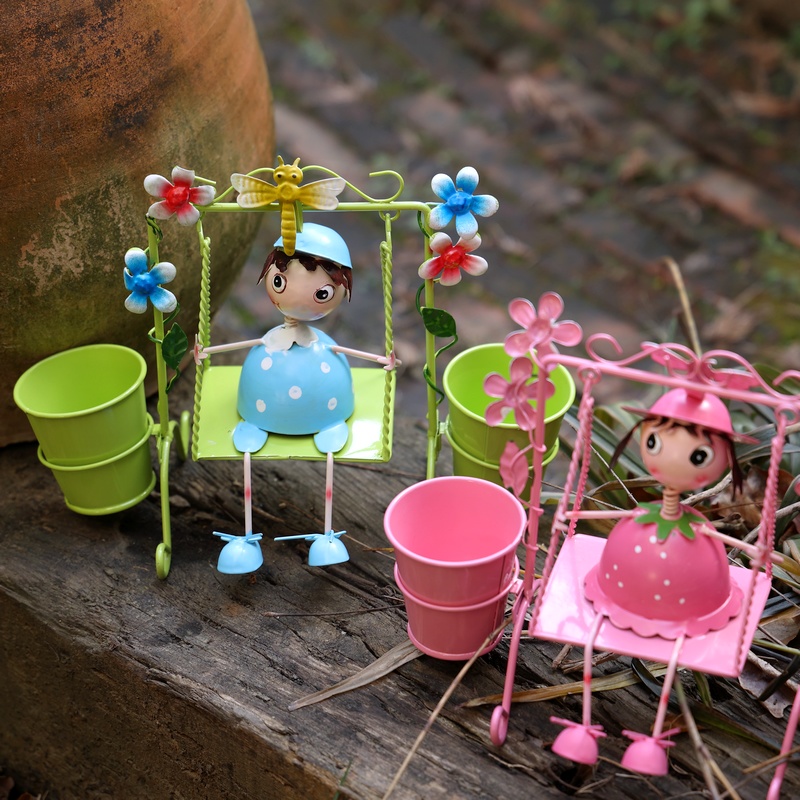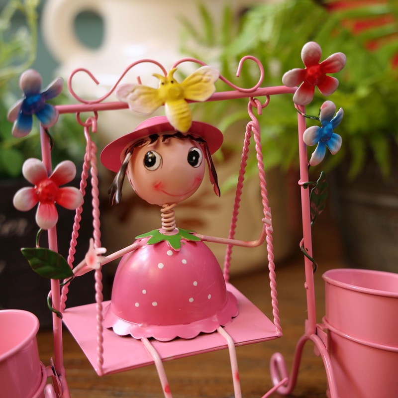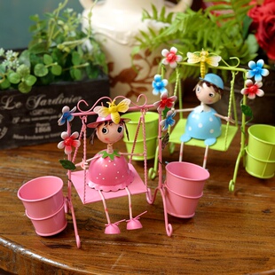 秋千情侣七夕情人节送礼家居装 饰铁皮娃娃婚庆幸福寓意笔筒摆件
