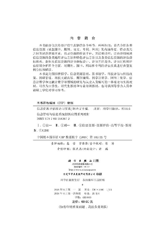 信息资源评估理论与实践 胡泽文