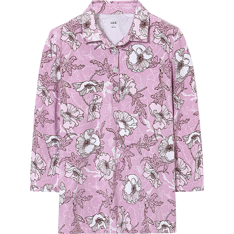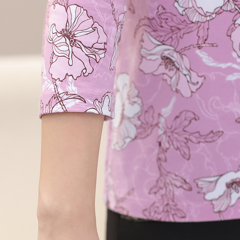 妈妈印花上衣H728 领七分短袖 AB内衣女士夏季 家居舒适透气竹棉衬衫