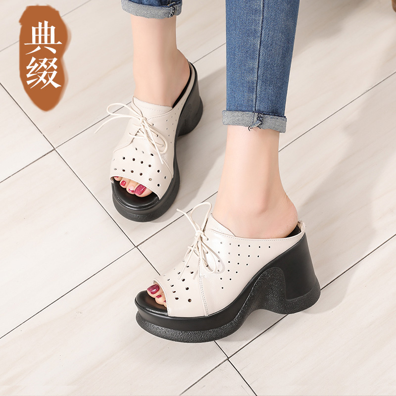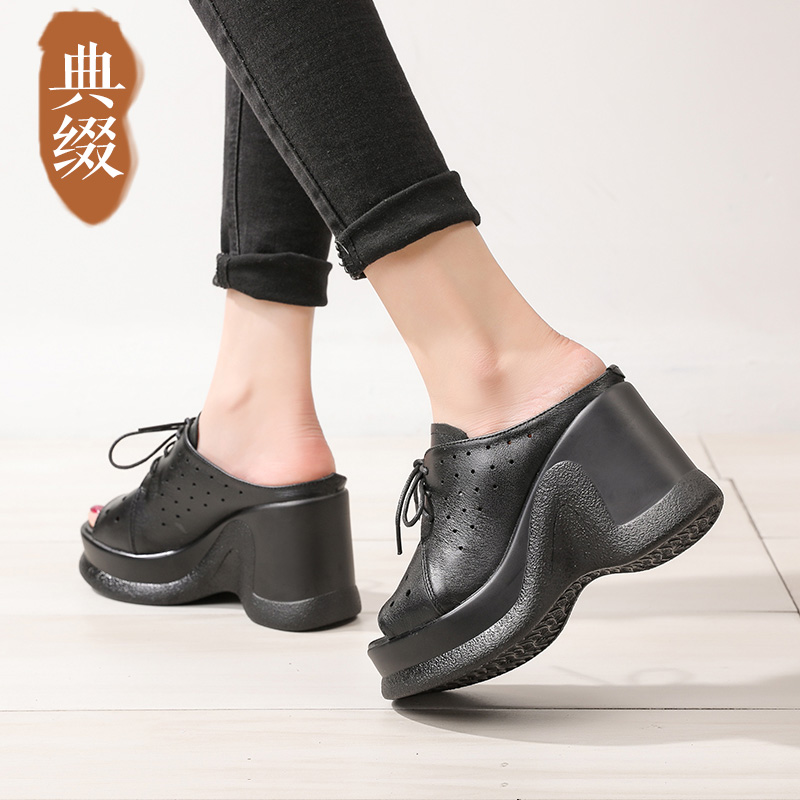 凉鞋 坡跟松糕拖真皮鞋 洞洞鞋 夏高跟鱼嘴懒人鞋 女外穿厚底2025新款
