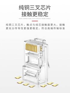 水晶头超五5类六6类千兆纯铜镀金屏蔽网线插头家用rj45网络对接头