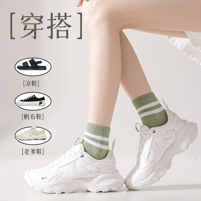 袜子女中筒袜纯棉女士运动袜子全棉防臭夏天薄款 短袜女短筒不勒脚