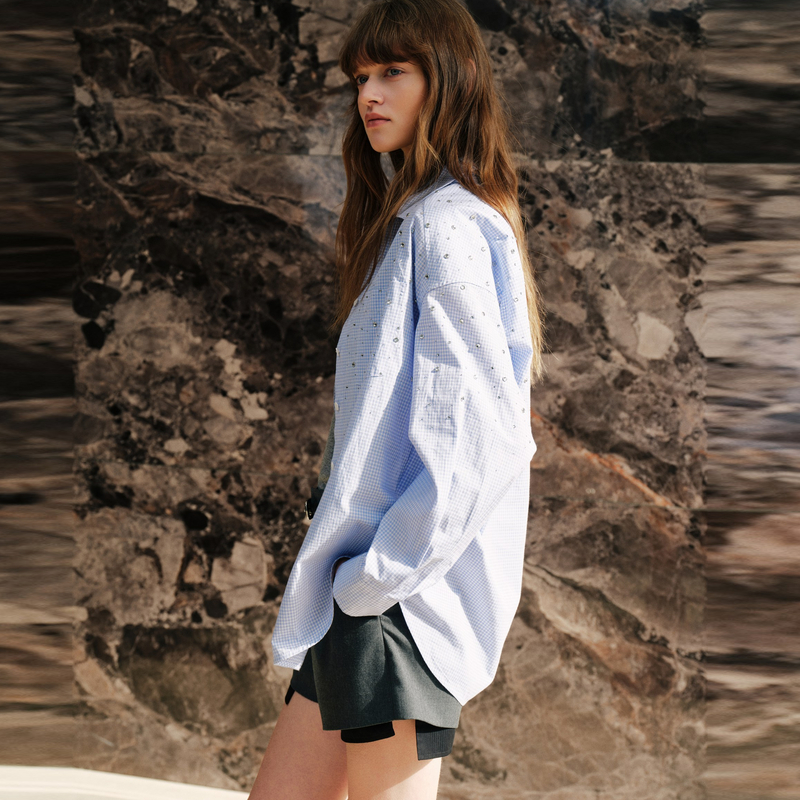 衬衣女05345463 纯棉府绸破骨连肩中袖 佐丹奴知识分子风衬衫 女新款