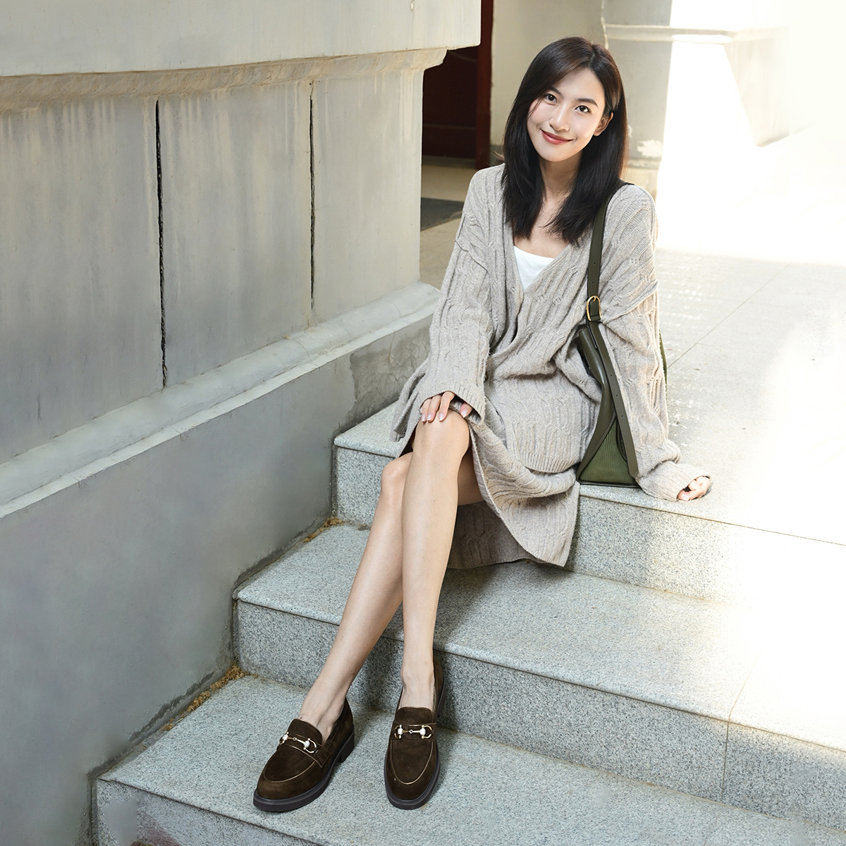 舒适女鞋 诺贝达新款 羊反绒一脚蹬时尚 通勤复古单鞋 RL257005 乐福鞋