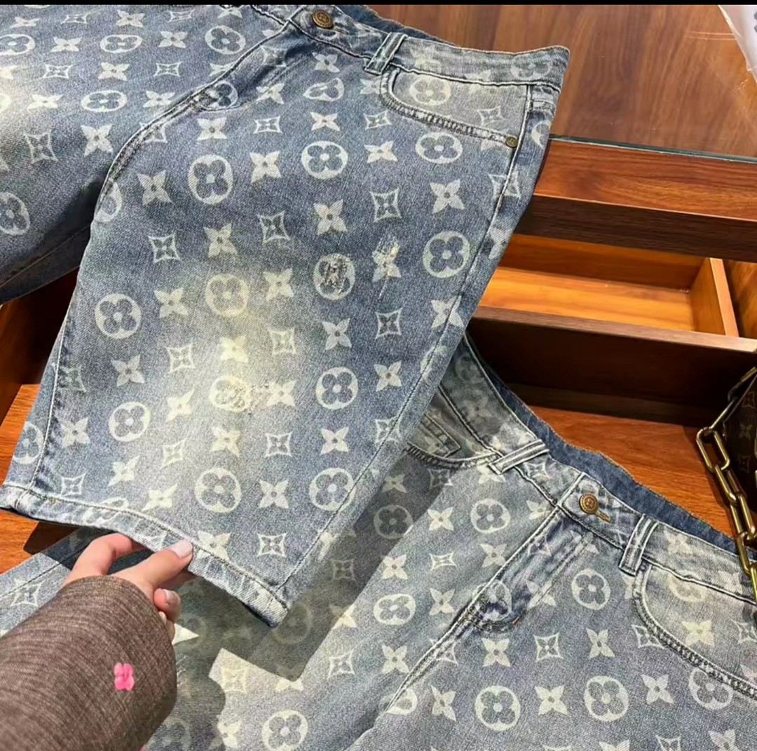 男夏季 印花牛仔五分裤 薄款 休闲百搭沙滩裤 轻奢时尚 水洗直筒裤 个性