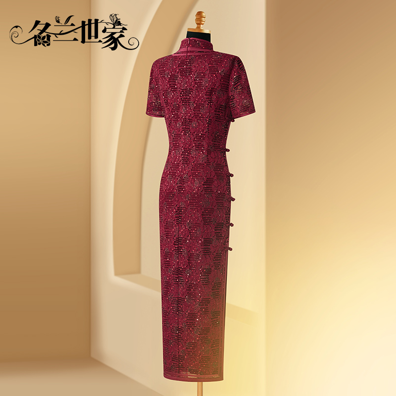 礼服宴会连衣裙10月份 妈妈长袖 紫色旗袍喜婆婆婚装 中年女2025新款