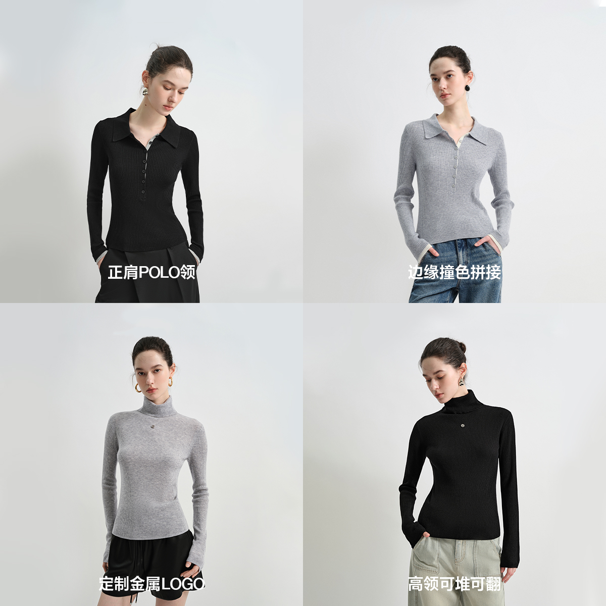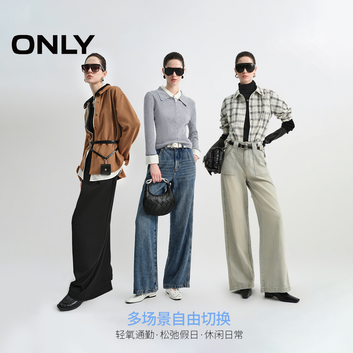 口简约显瘦正肩针织衫 撞色门襟假两件拼接袖 女 新款 ONLY2025秋季