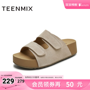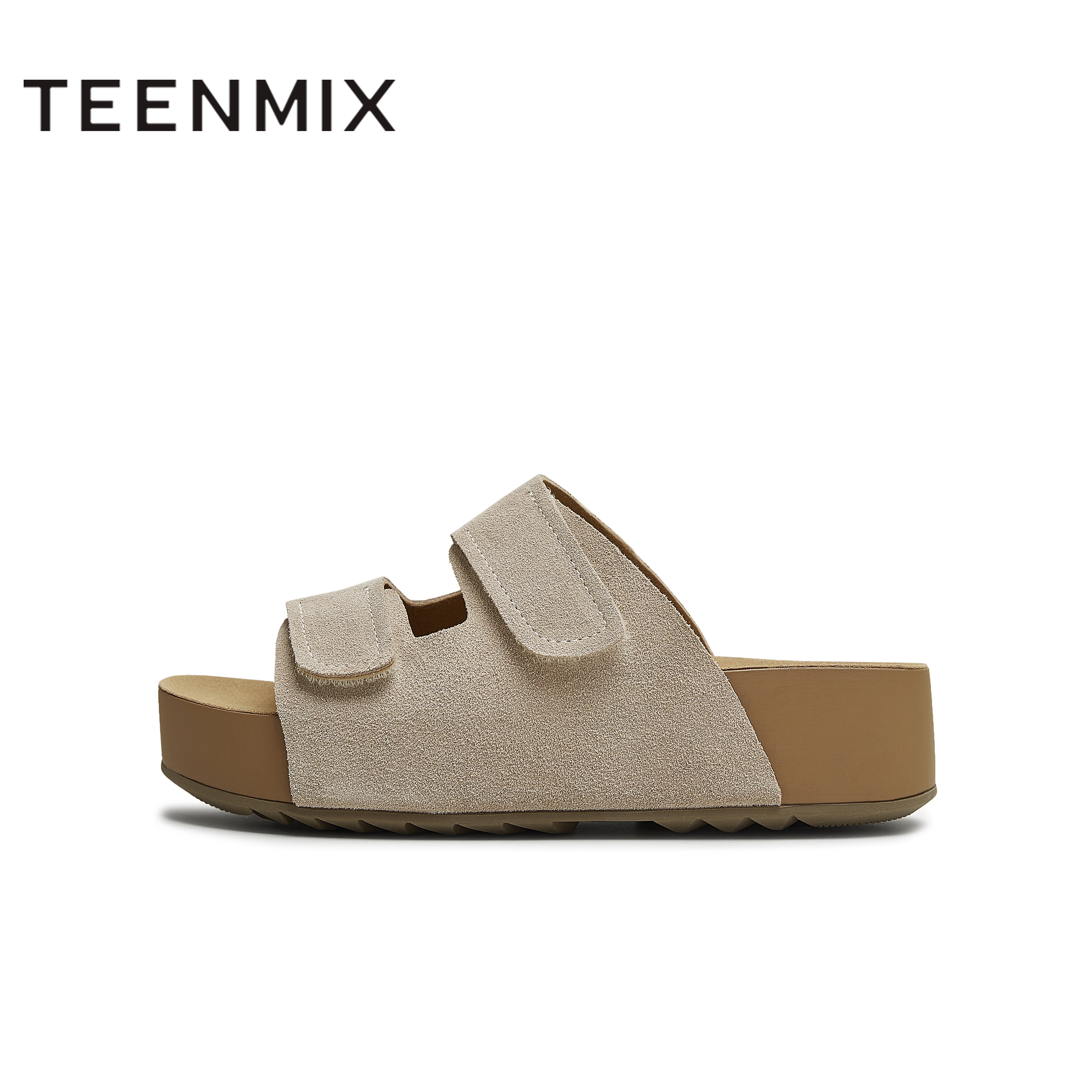 女勃肯拖鞋 外穿沙滩鞋 KK064CT5 魔术贴厚底拖鞋 天美意2025秋新款