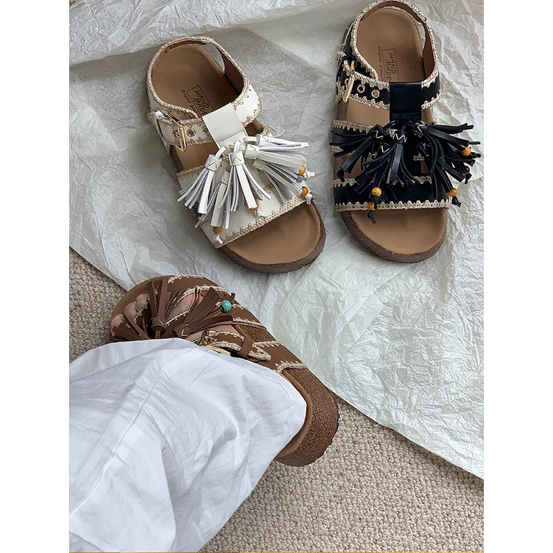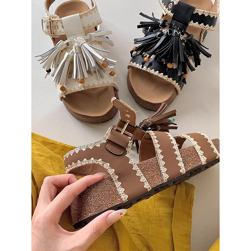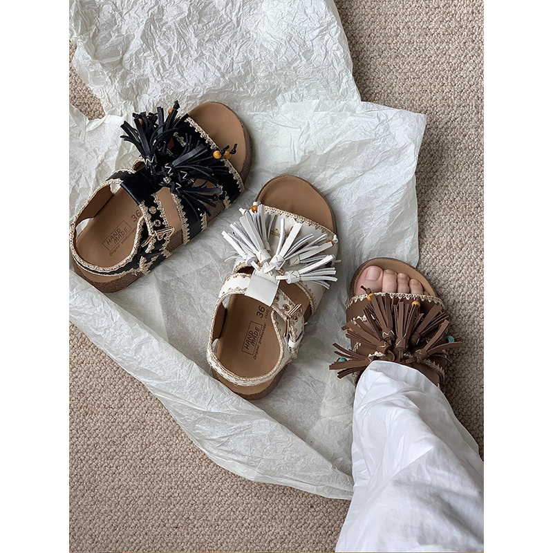 复古设计凉鞋 夏季 外穿拖鞋 女2025香港新款 中跟露趾 真皮厚底勃肯鞋
