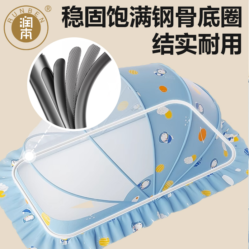 可折叠 润本婴儿床蚊帐罩新生儿童专用宝宝蚊帐全罩式 赠蚊香液