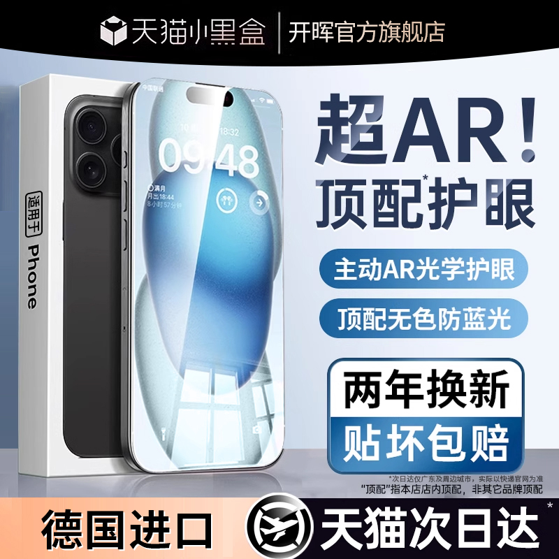 16promax钢化膜iphone13手机膜15新款 适用苹果17 14Plus抗蓝光12贴膜11全屏Air保护xs 德国进口顶配AR护眼