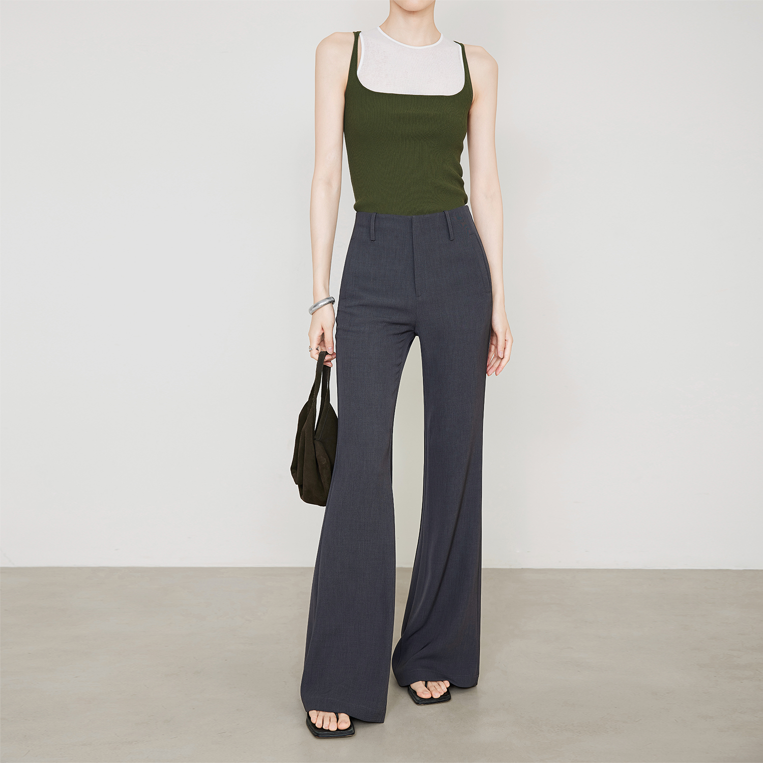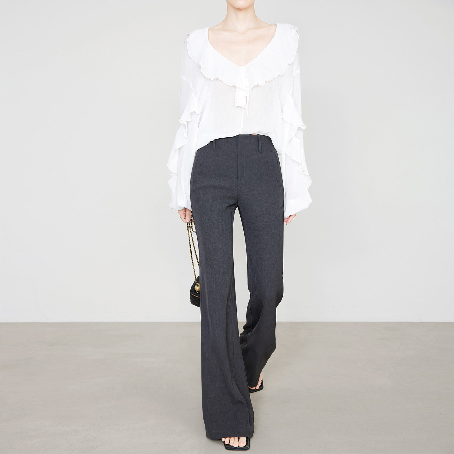 裤 夏莫卡灰色微喇裤 西装 高腰喇叭裤 6822 女弹力显瘦ROW风休闲长裤