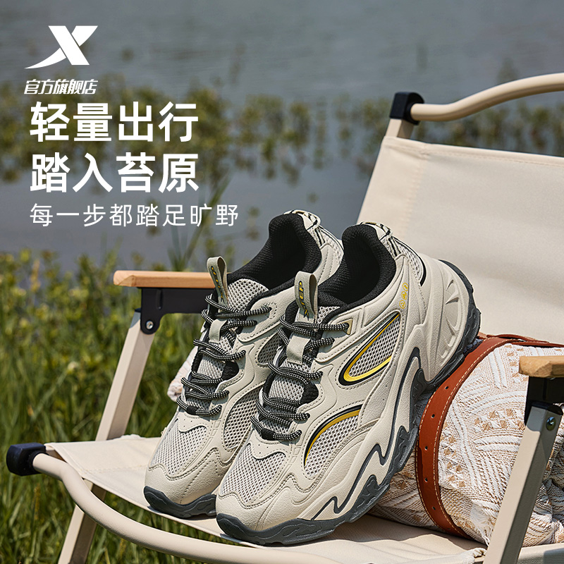 皮面防泼水爸爸减震网面休闲鞋 特步跑步鞋 黑色运动鞋 秋冬新款 男鞋
