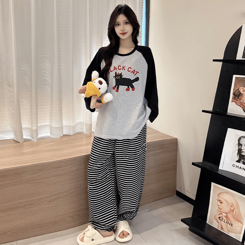 可外穿家居服套装 轩靓慵懒风睡衣女春秋款 可穿大码 四季 纯棉长袖