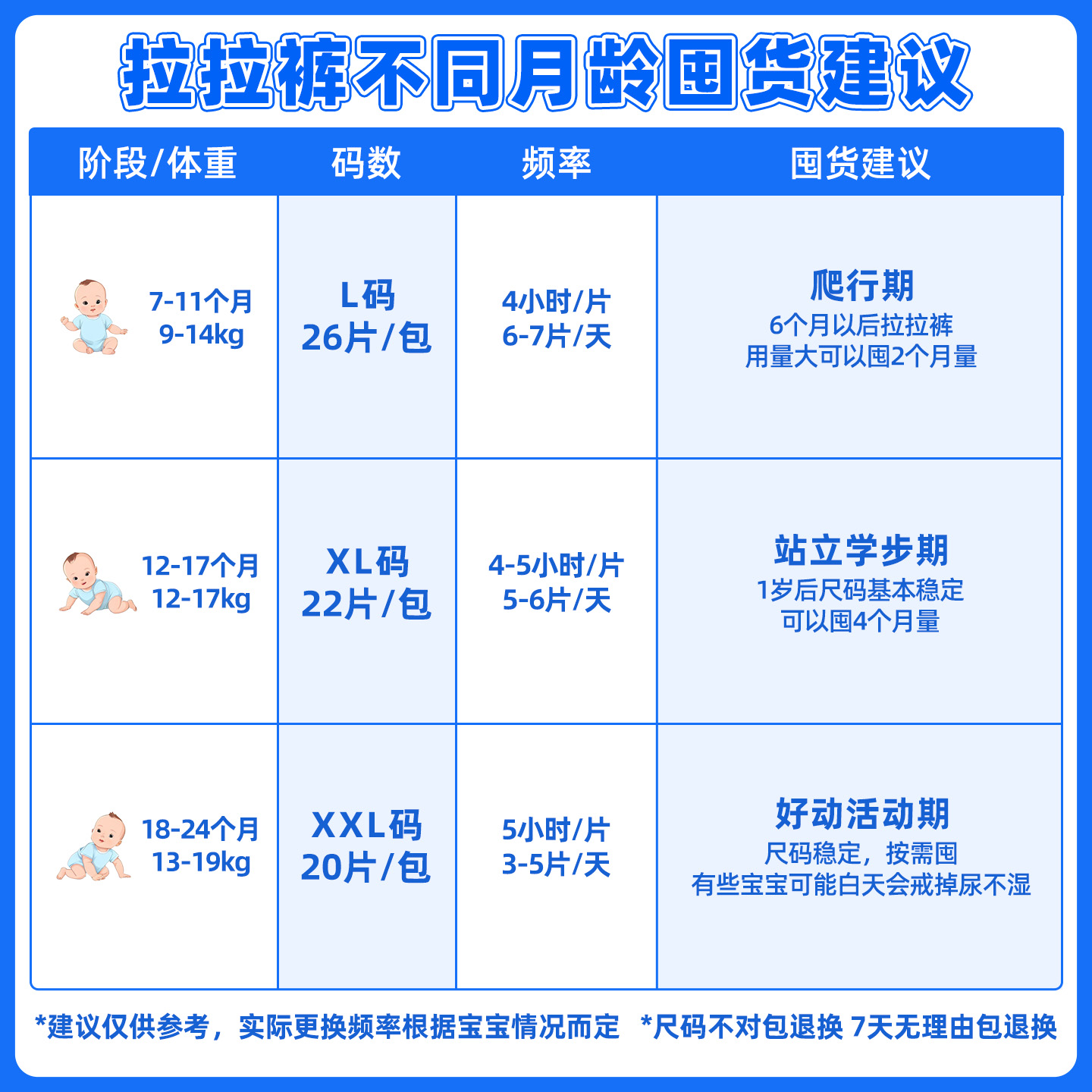 婴儿超薄透气学步裤 宝宝纸尿裤 尿不湿 XXL20成长裤 BBU云棉拉拉裤
