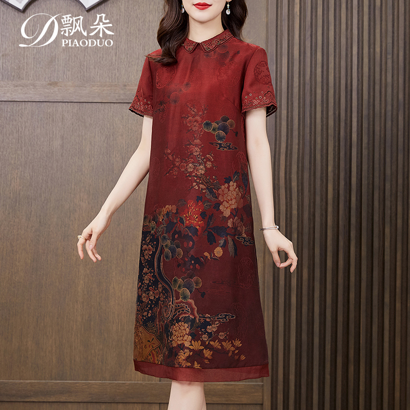 花罗香云纱真丝连衣裙女2024夏季 高端桑蚕丝气质中年妈妈裙子 新款