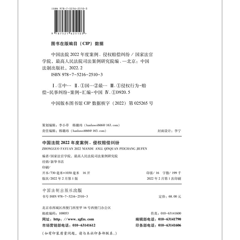 社 中国法院2022年度案例 中国法制出版 侵权赔偿纠纷 9787521625103