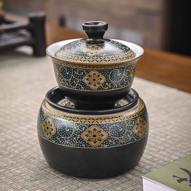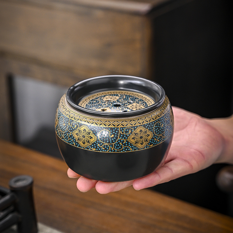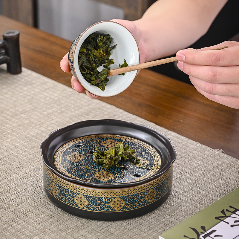 建水小号陶瓷壶承干泡台倒茶叶渣桶茶渣缸带盖中式 复古茶水缸茶钵