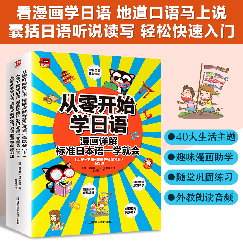从零开始学日语 正版 日语字帖 日语自学教材全3册 外教朗读音频漫画标准日本语言课程单词语法新编零基础新手入门教程书籍 包邮