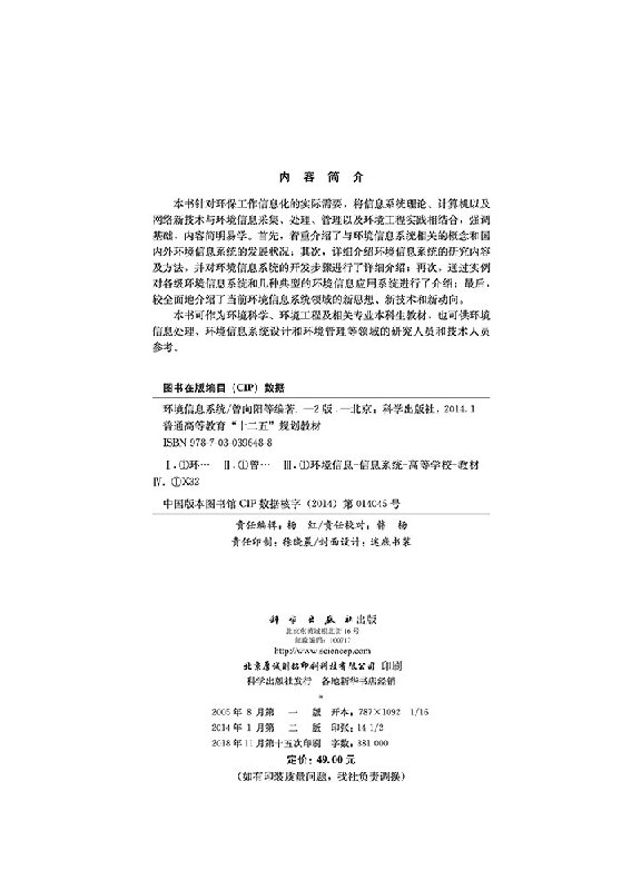 第二版 9787030396488 曾向阳 社 书店大学教材旧书 科学出版 环境信息系统