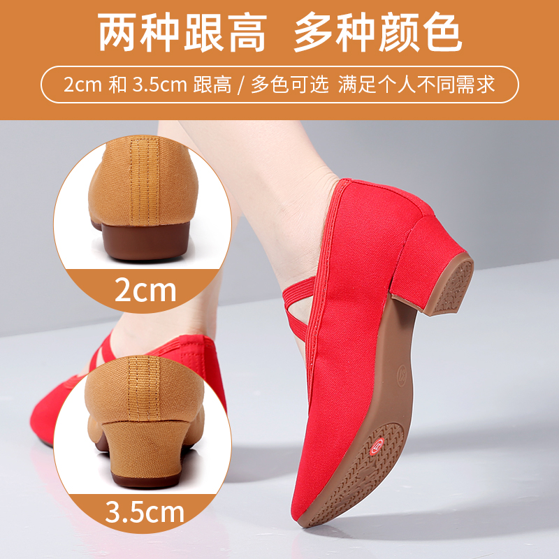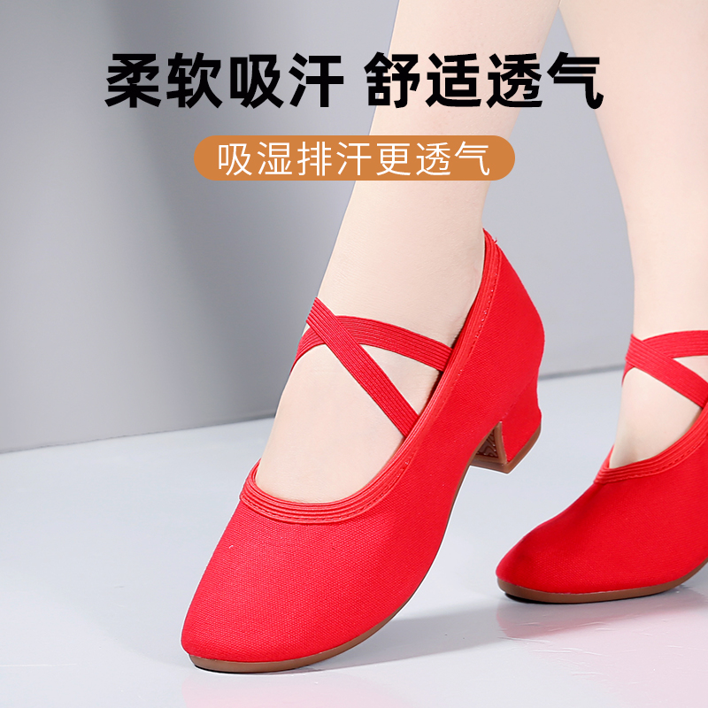 平底中跟广场舞不累脚秋冬新款 中老年舞蹈鞋 女软底红色演出跳舞鞋