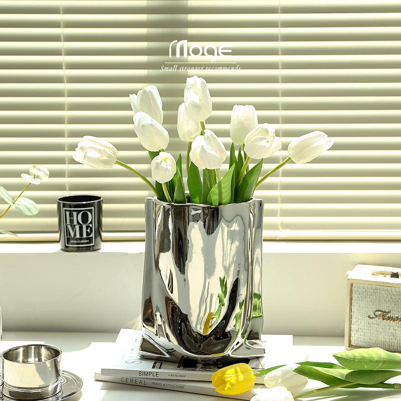 花瓶轻奢风电镀银色花瓶网红高级感插花创意客厅玄关餐桌装 饰摆件