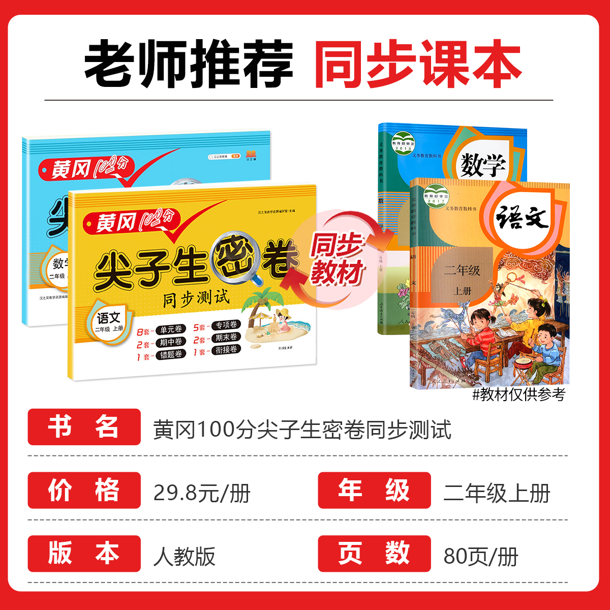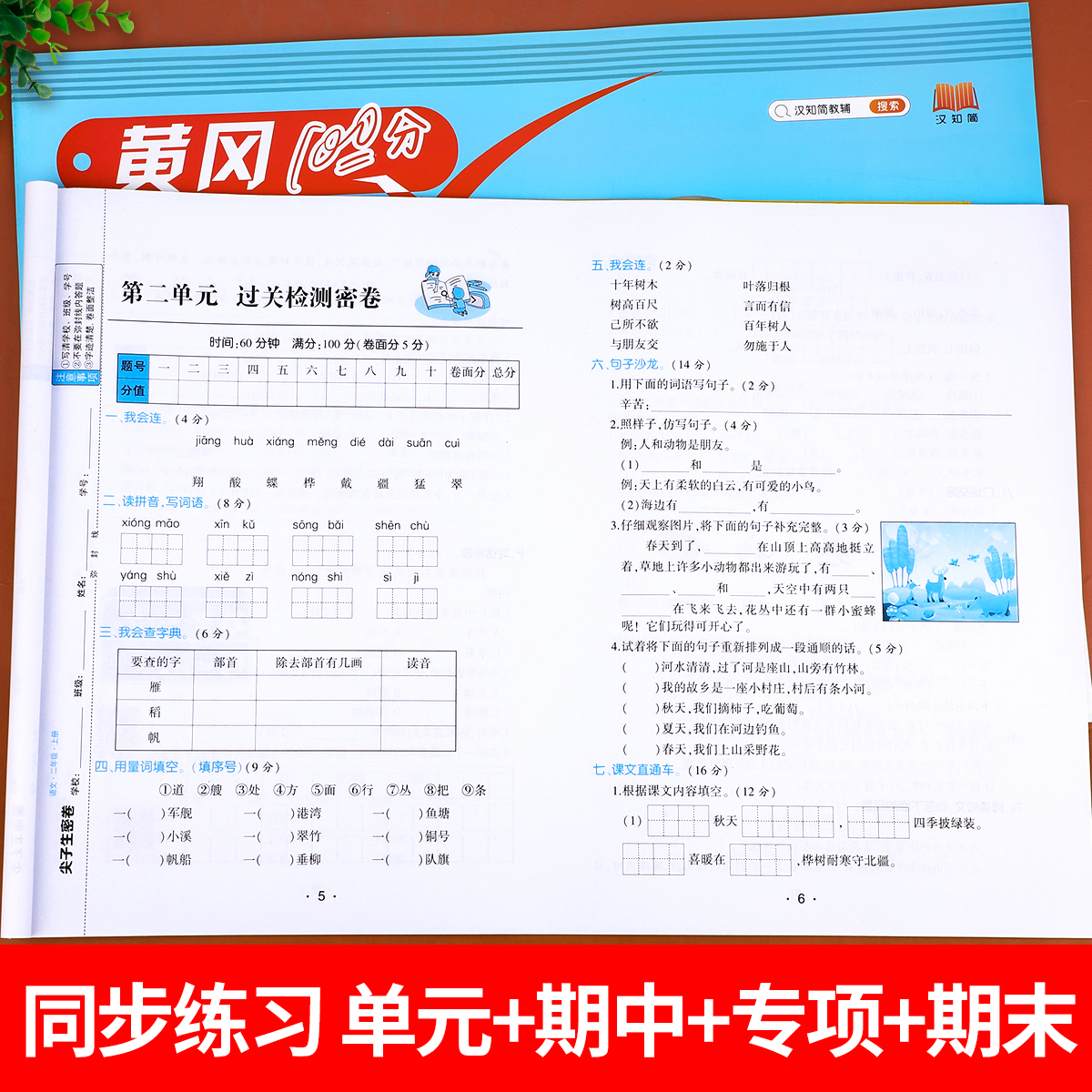 期中期末检测冲刺100分 小学2年级上学期试卷测试卷全套同步练习册训练题单元 二年级上册语文数学黄冈100分尖子生密卷同步人教版 上