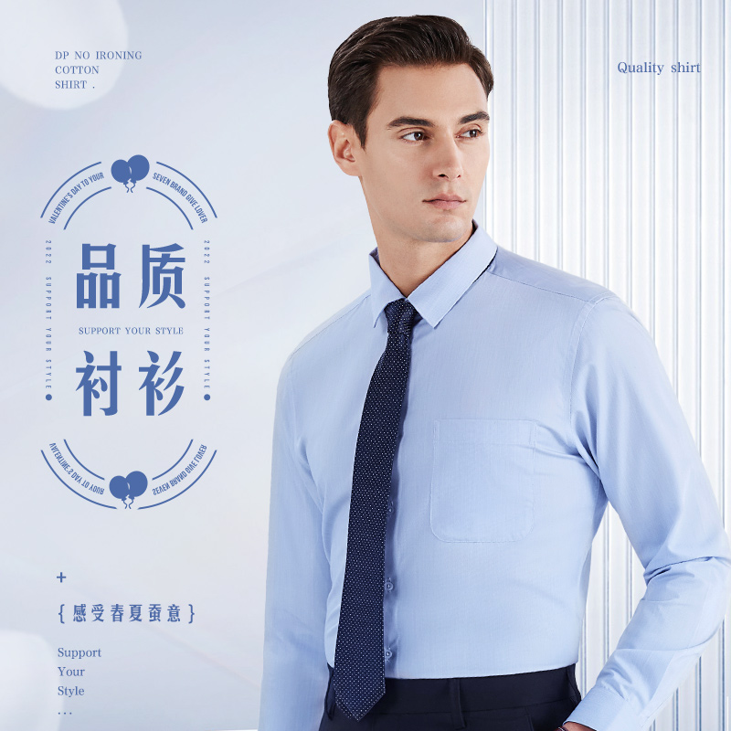 长袖 衬现在含桑蚕丝商务休闲春季 翻领贴袋衬衣 衬衫 柒牌清仓男士