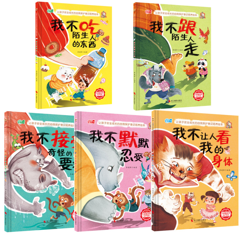 要求儿童安全教育绘本幼儿园3 精装 东西不接受奇怪 自我保护意识培养绘本系列全套5册不跟陌生人走不吃陌生人 6岁 硬壳硬皮绘本