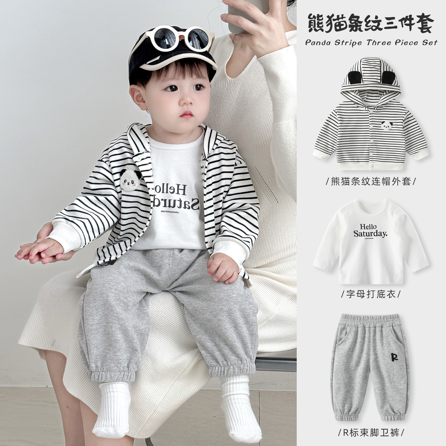 新年红卫衣运动套装 ER条纹撞色开衫 校园风运动服定制 明星同款