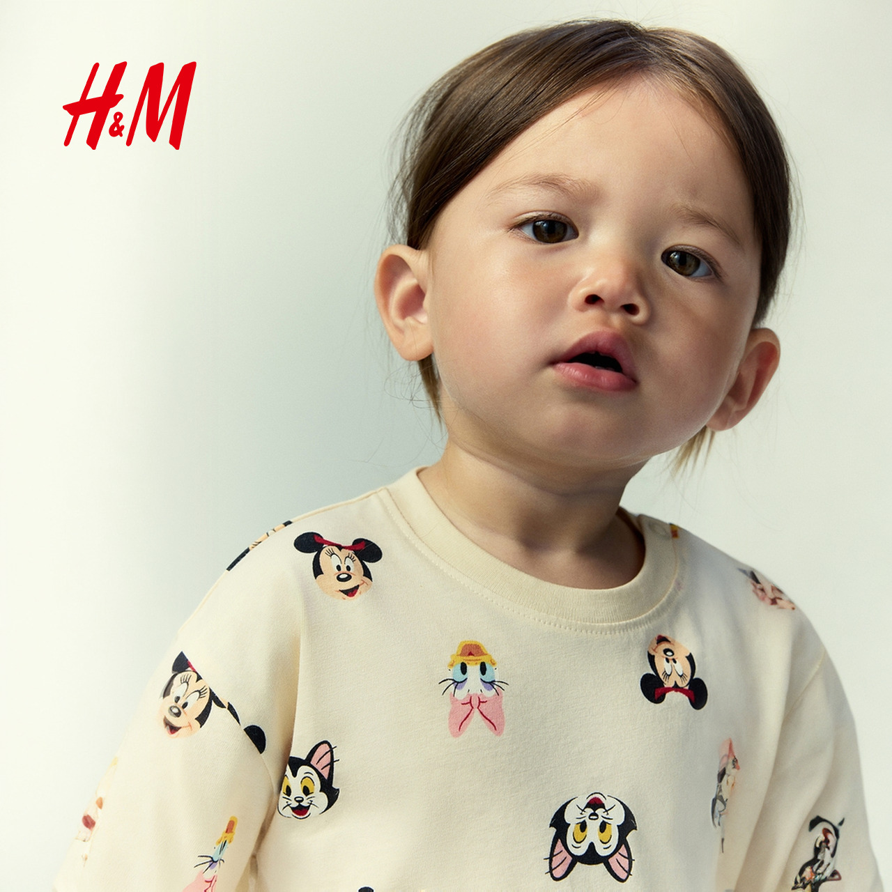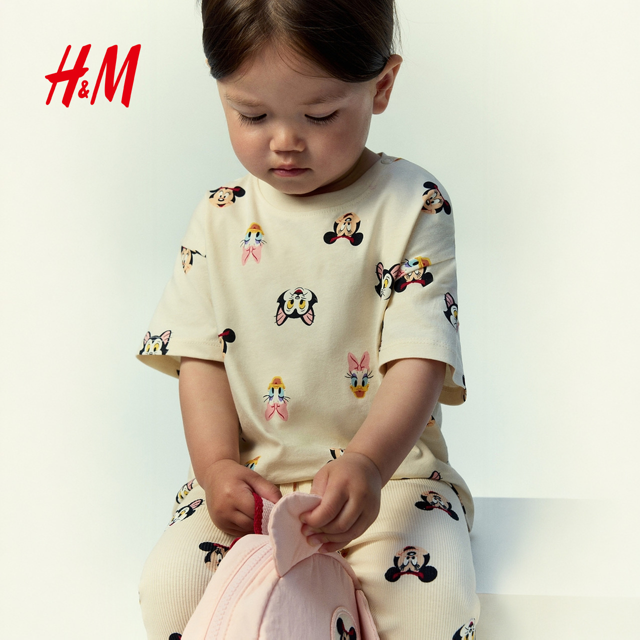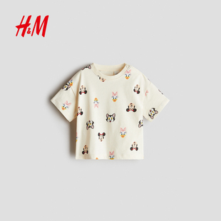 迪士尼系列 米妮印花图案短袖 HM童装 季 1263204 女婴T恤2025秋季