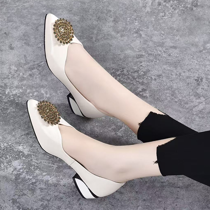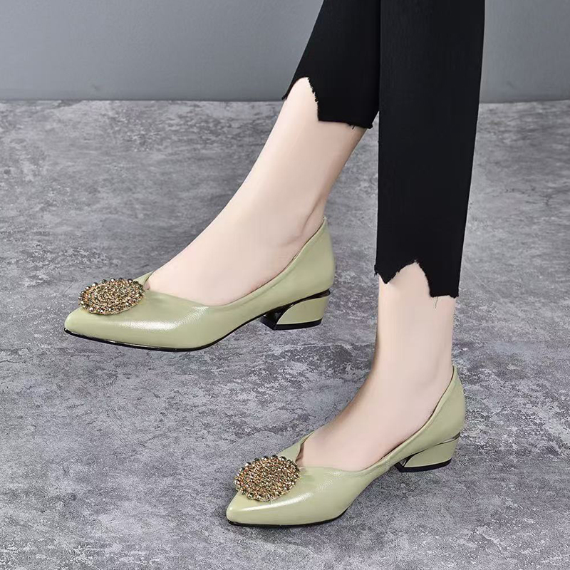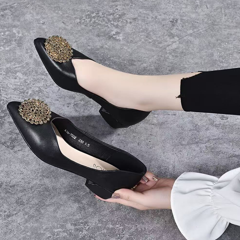 仙女风瓢鞋 秋季 浅口百搭中跟奶奶鞋 大码 真皮单鞋 女鞋 粗跟2025新款