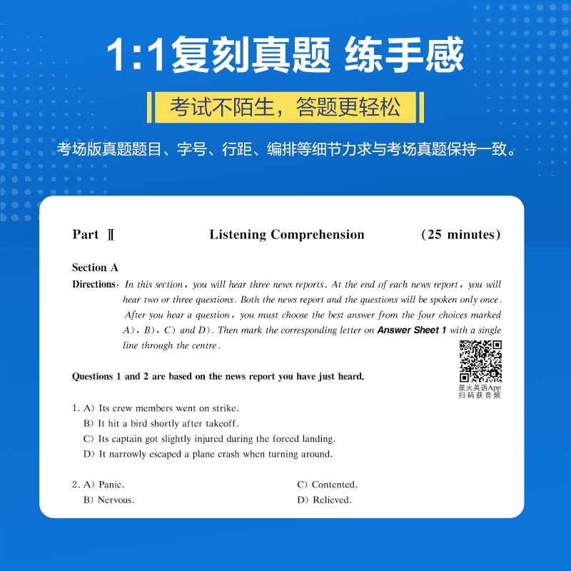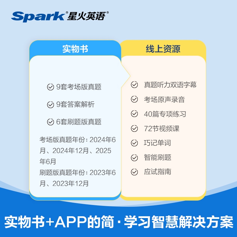 星火英语四级英语考试真题备考2025年12月四级真题试卷通关学习资料大学英语cet4四六级词汇单词书阅读听力作文翻译专项训练模拟题