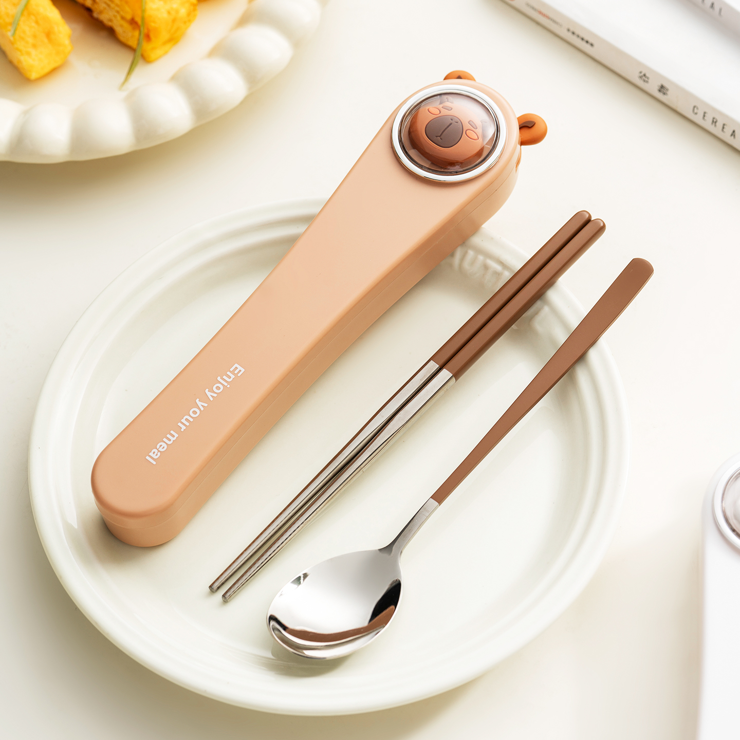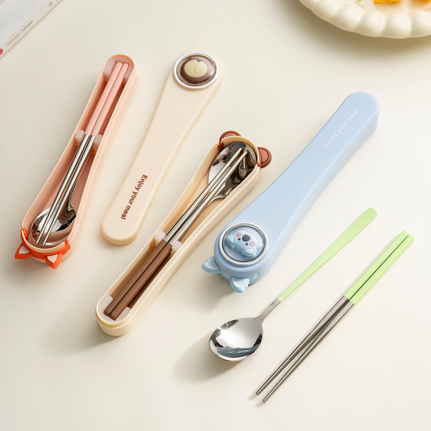 onlycook 便携餐具304不锈钢儿童筷子勺子小学生上学专用筷勺套装