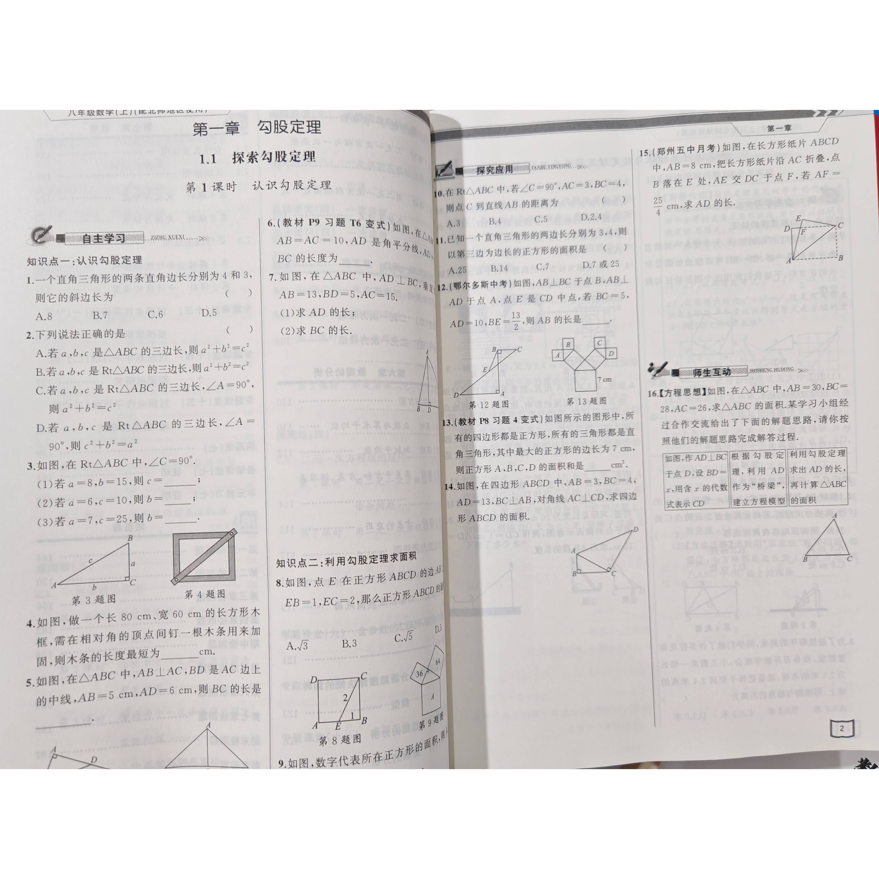 附试卷周周练单元 2025秋 胡明享主编 初中8年级上册北师地区使用教材同步练习册BS 复习答案 原创新课堂八年级上册数学北师版