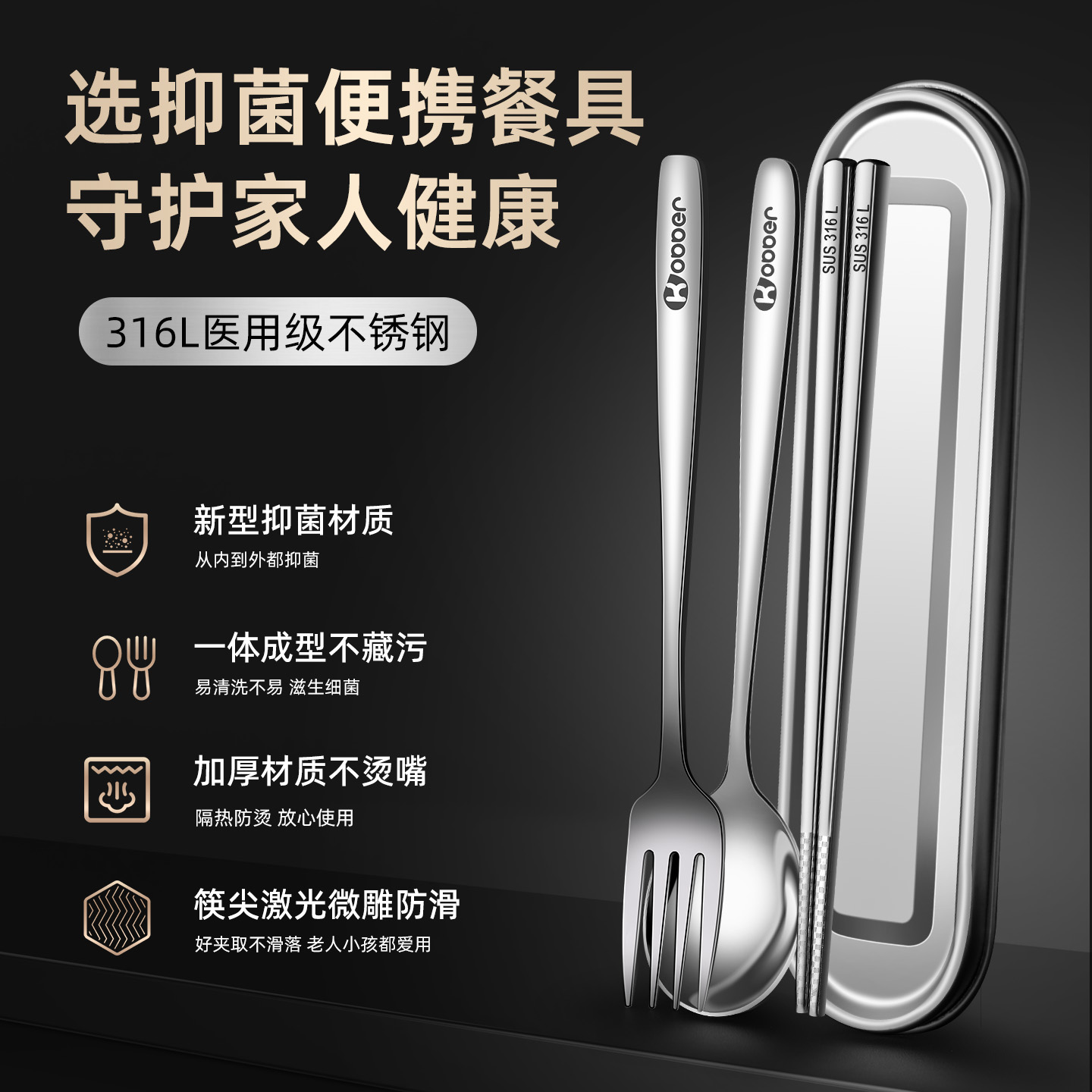 316L不锈钢筷子勺子套装 收纳盒 一人用学生便携餐具盒上班族单人装