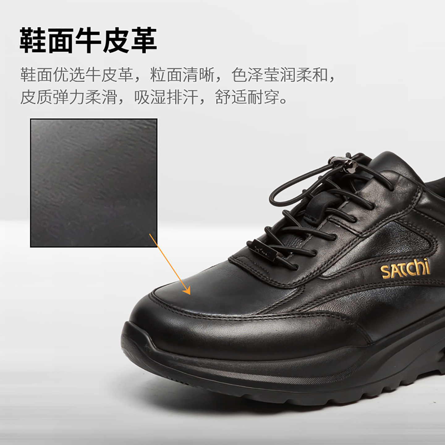 软皮时尚 沙驰男鞋 真皮厚底气垫圆头运动休闲鞋 休闲鞋 潮流透气 男士