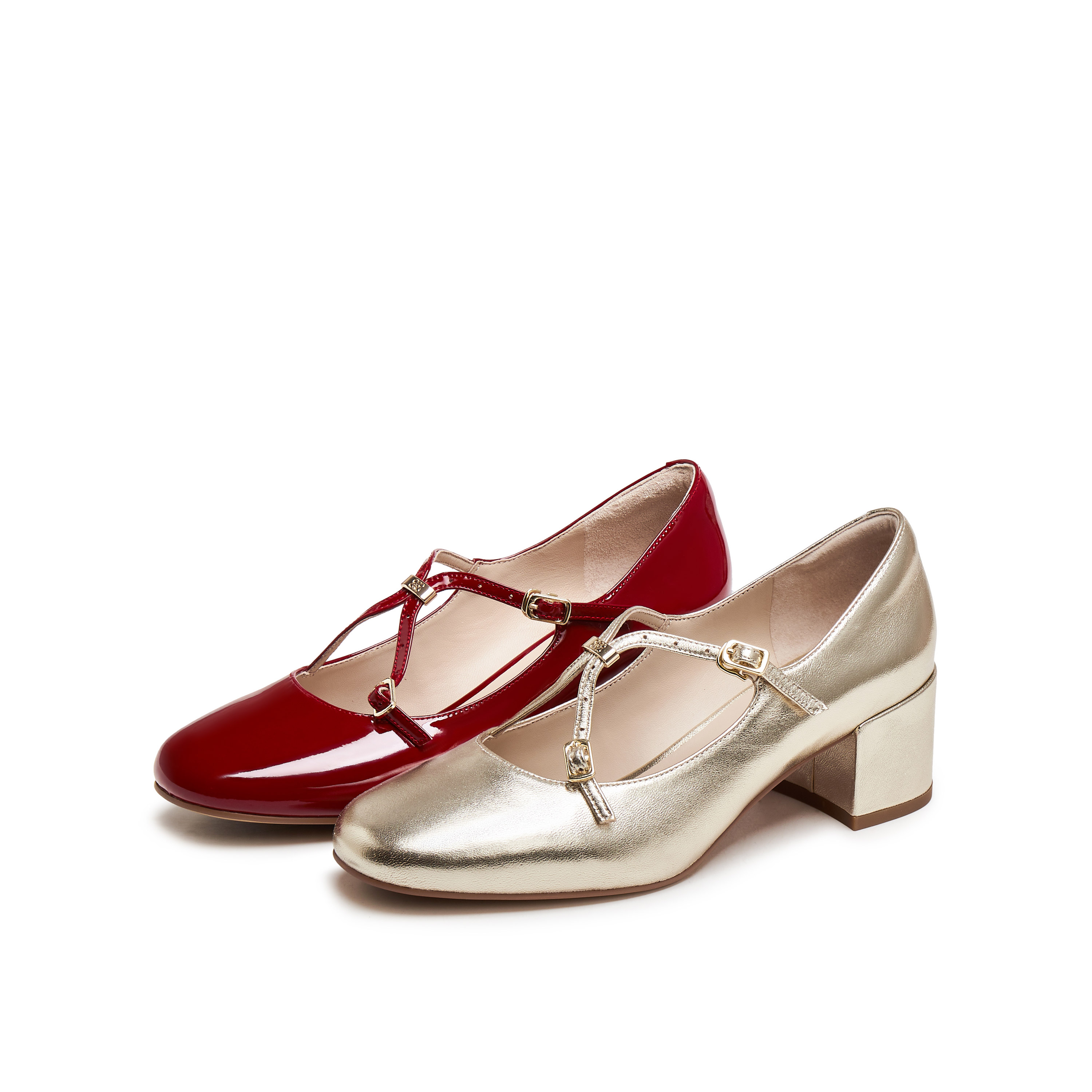 红色玛丽珍鞋 法式 百思图莫奈花园25秋新款 女单鞋 乔欣明星同款