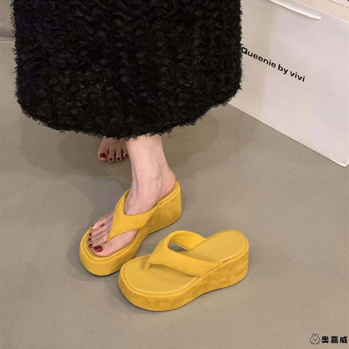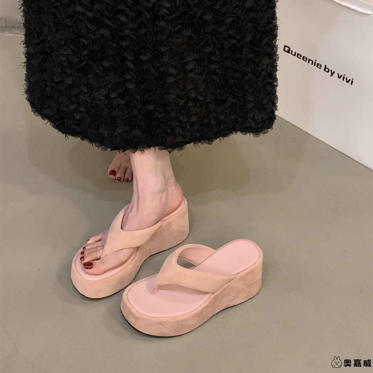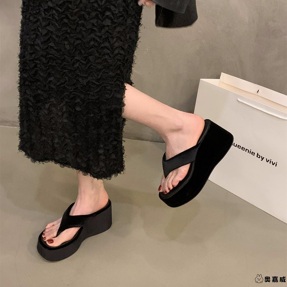 配裙子厚底凉拖高跟凉鞋 子外穿2025秋季 女鞋 坡跟增高夹脚人字拖鞋