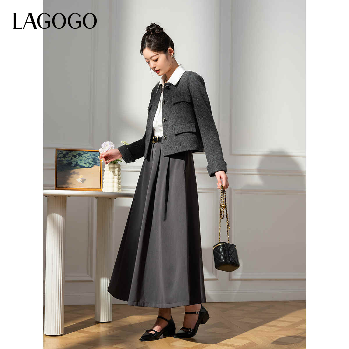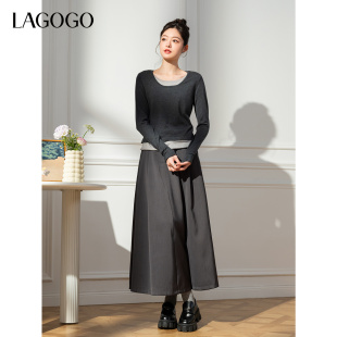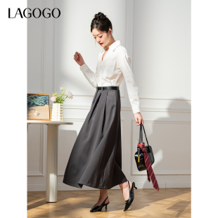 LAGOGO垂感A字半身裙女拉谷谷2025年秋季 显瘦气质裙子送腰带 新款