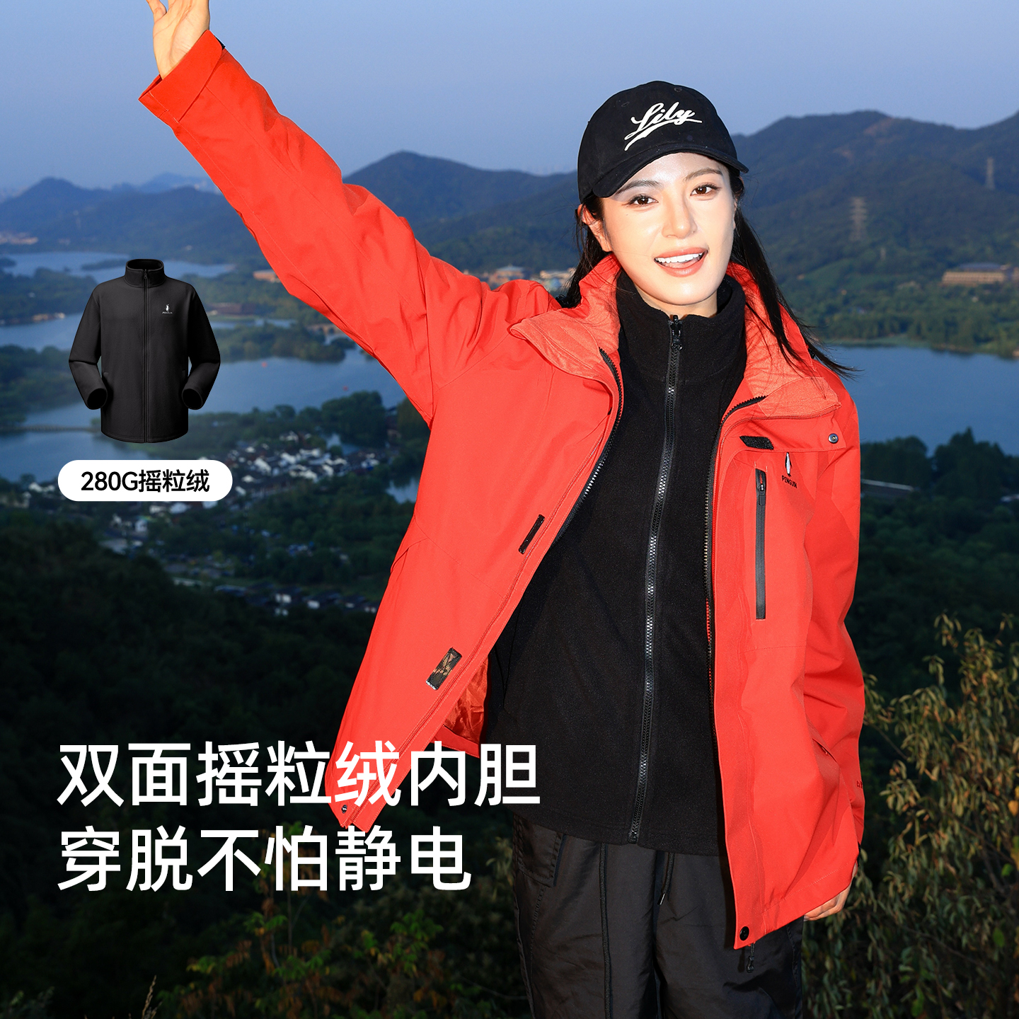 骆驼女装 夹克户外防风防水休闲外套 冲锋衣抓绒三合一2025秋冬新款