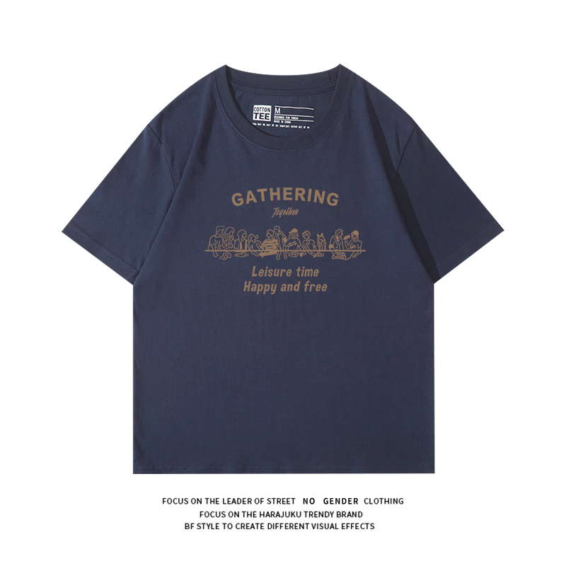 欧美高级感人物卡通印花黑色短袖 正肩体恤 t恤男宽松高个子不撞款