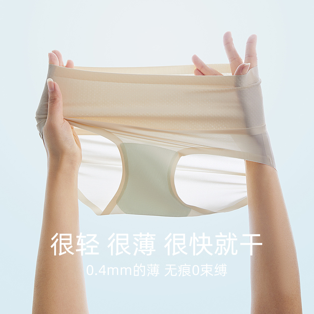 大码 无痕透气亲肤薄真丝莫代尔三角裤 女 蕉内银皮500E女士内裤 3件