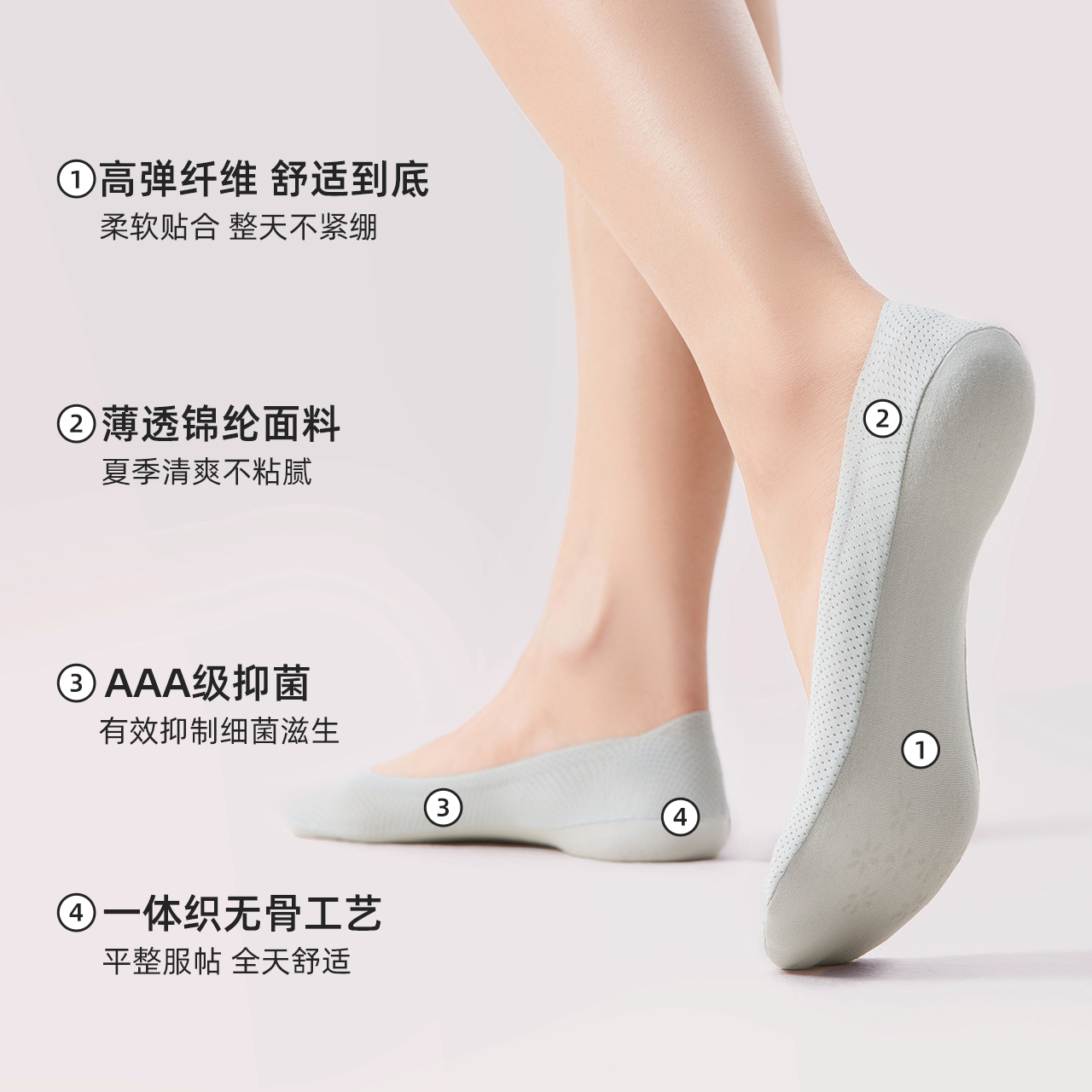 高跟鞋 袜子薄款 袜子 冰丝隐形袜棉制底防滑不掉跟浅口鞋 船袜女夏季