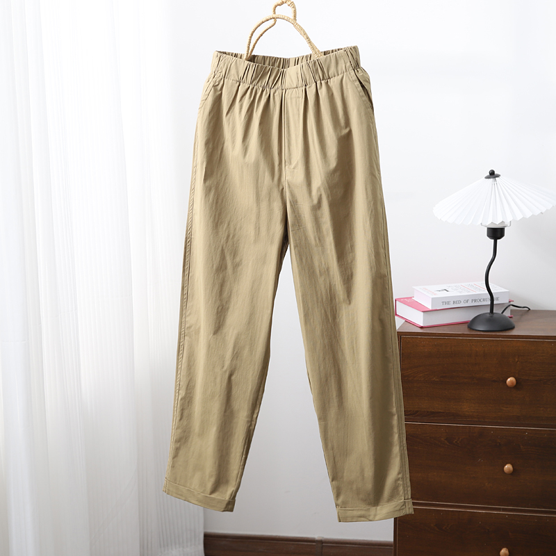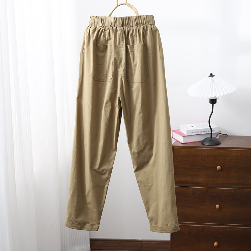 萝卜裤 女卷边棉麻小个子简约口袋小脚裤 松紧腰哈伦九分裤 春夏薄款