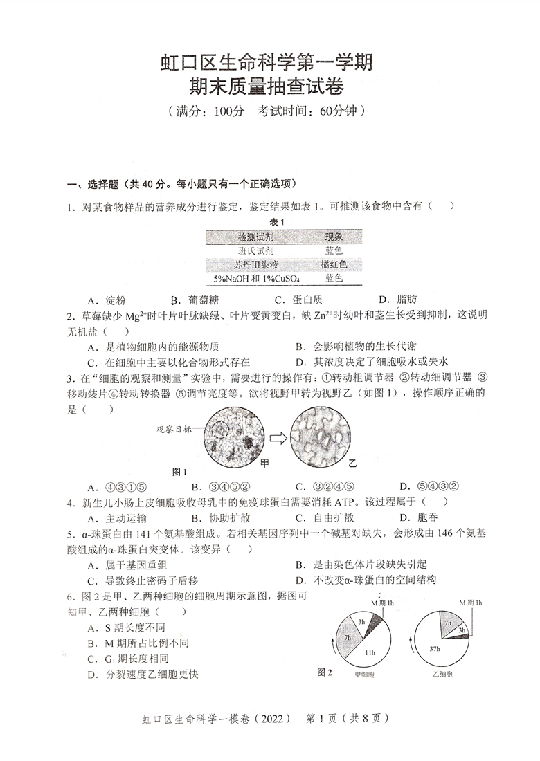 仅试卷 生命科学 领先一步文化课强化训练2021上海市高三生命科学一模卷期末质量抽查试卷精编 上海高考一模卷 2022年版